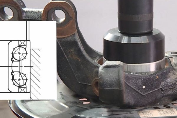 • It is important to keep the bearing aligned to the knuckle bore and press it vertically into the knuckle.