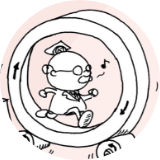 たるの形をしたころを組み込んで、回転 (かいてん) 中の小さなずれを調整 (ちょうせい) できるベアリング。 建築現場 (けんちくげんば) で岩をくだく機械 (きかい) などに使われているよ。